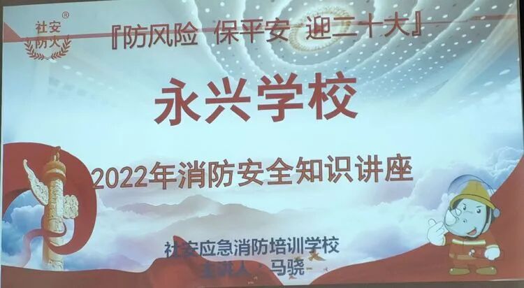 时维十月,序属三秋。在这秋风习习、金桂飘香的时节,永兴学校校诚邀马骁老师为我校教师和学生进行消防安全知识讲座,学校副校长周守谦、党支部书记王立成以及永兴学校教师齐聚多功能会议室,认真聆听消防安全知识讲座。